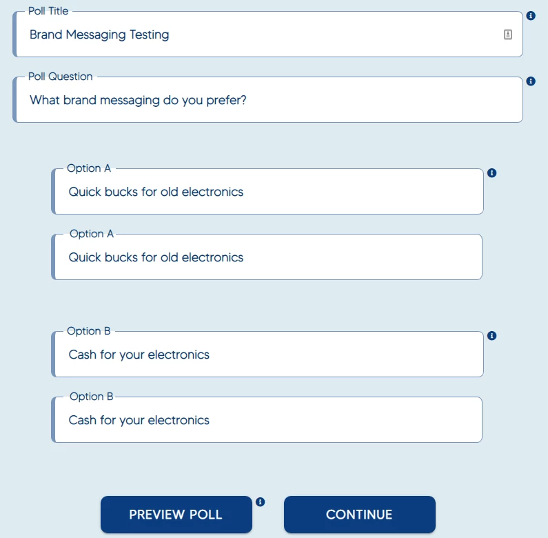 A simple usability A/B test with Poll the People give you the ability to compare two brand logos, messaging, or brand representations to ask users for their opinions.